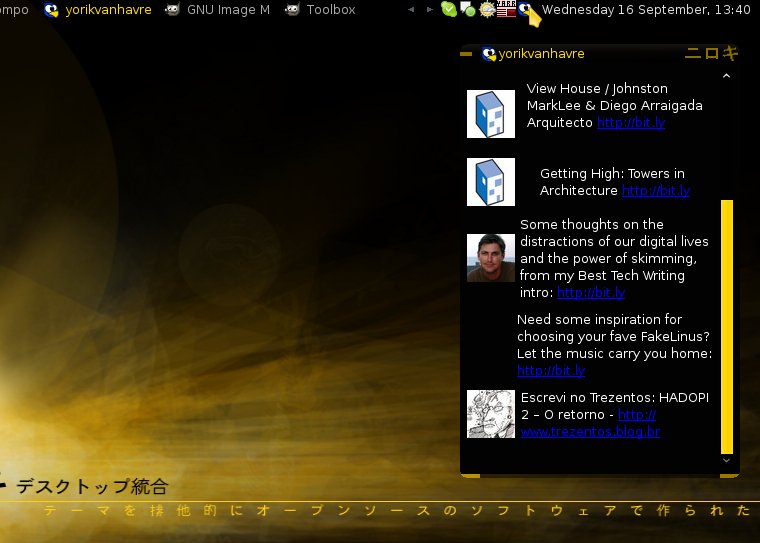 This is a simple pygtk-based application that puts an icon in your system tray, that shows a simple window containing your friends tweets when you click on it. Web links inside tweets as well as @someone or