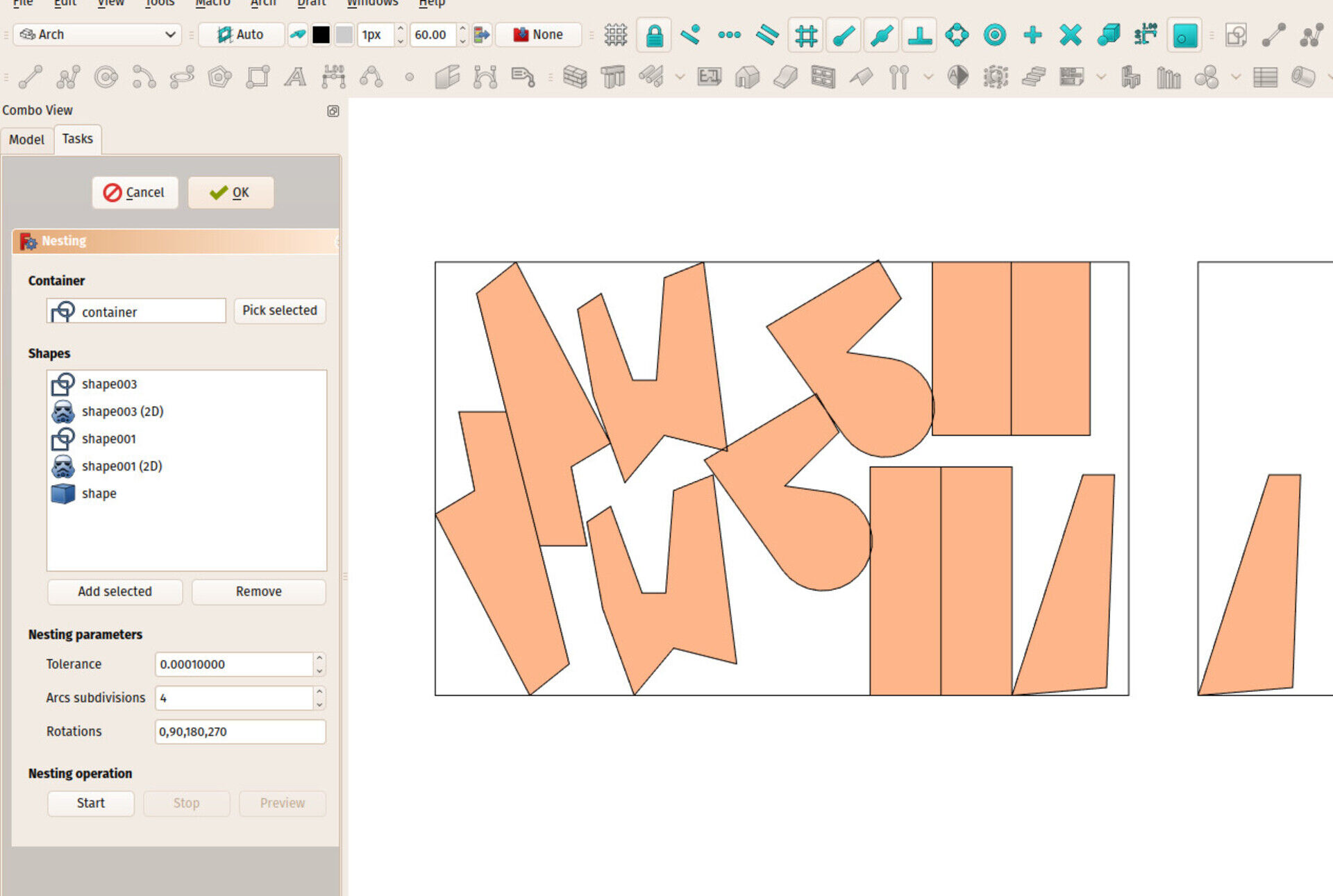 So the big thing I have been working on these last months is now merged in FreeCAD. I have been posting about it in the previous report already. It is an algorithm that organizes shapes to fit into a containing shape. This is useful in CNC operations, when, for example, you want to cut out a series of wooden pieces out of a wood panel, and want to stack all these pieces the best possible way on your panel.