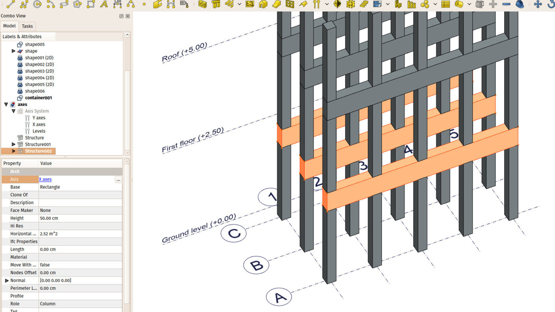 I also introduced several changes to the Arch Axis system. There was already a way to make a series of structural objects spread over the crossing points of different axes, but it was not very easy to find and weird to use. I believe the new system is much cleaner and powerful. It basically works like this now: