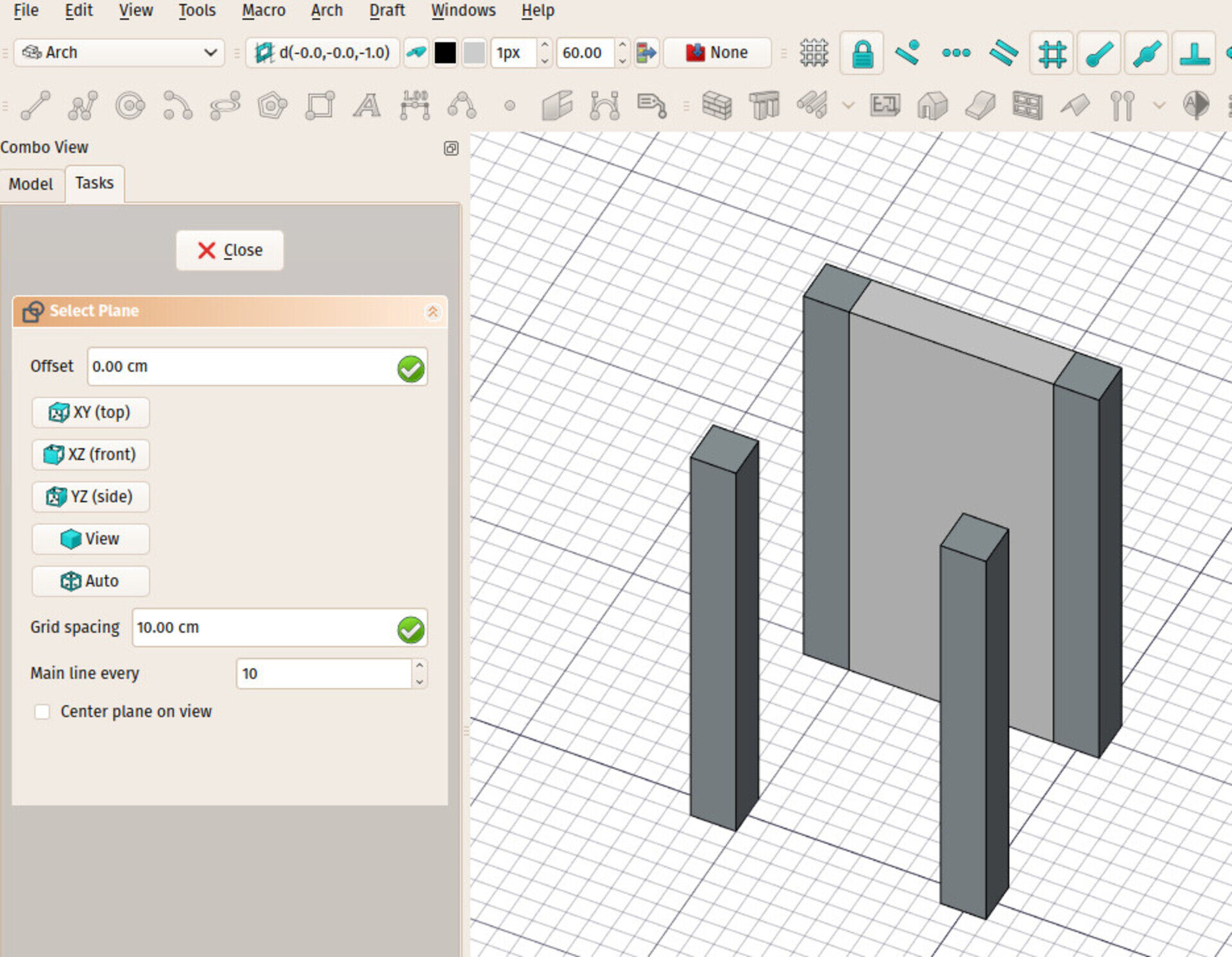 The Draft Working Plane tool is something you use constantly and everywhere when working with Arch. It is one of these tools that grew more and more complex over time, and that is now quite a powerful behemoth... For who is not used to Draft/Arch, it is responsible for setting a 2D plane where all the subsequent Draft and Arch operations will take place. The location of this working plane is represented by the Draft grid, that shows the position and orientation of the plane, and also gives a visual interval (the grid size), which you can also snap to.