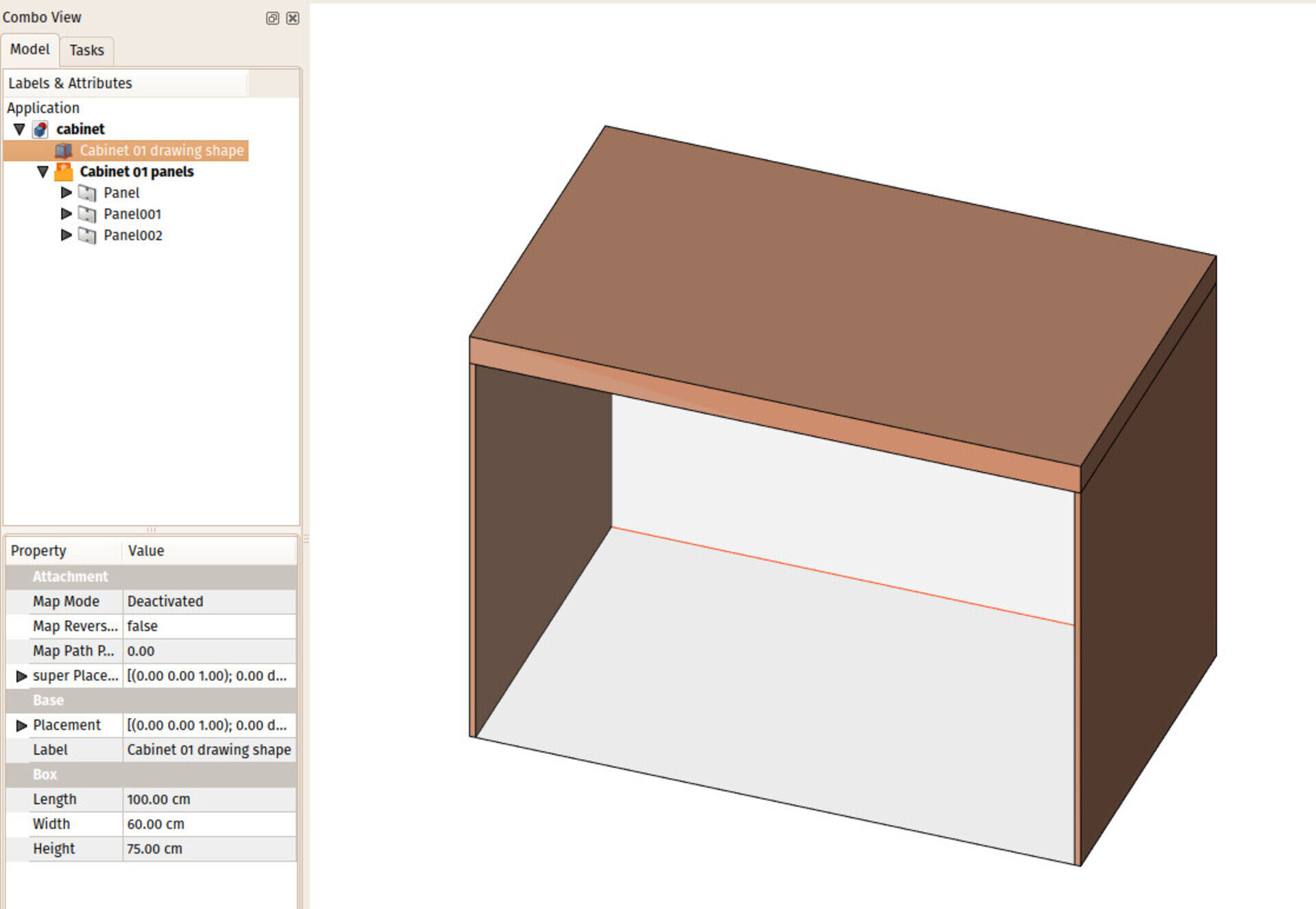 Another talk I had with a FreeCAD user (that will soon become a more stucturated plan) lead me to this interesting experiment, where you take a simple Part Box, and use it as a "driver" shape for inner objects, like the panels and doors of a cupboard. This is an interesting workflow, and I liked to be able to work with simple boxes, that contain their own more detailed components.