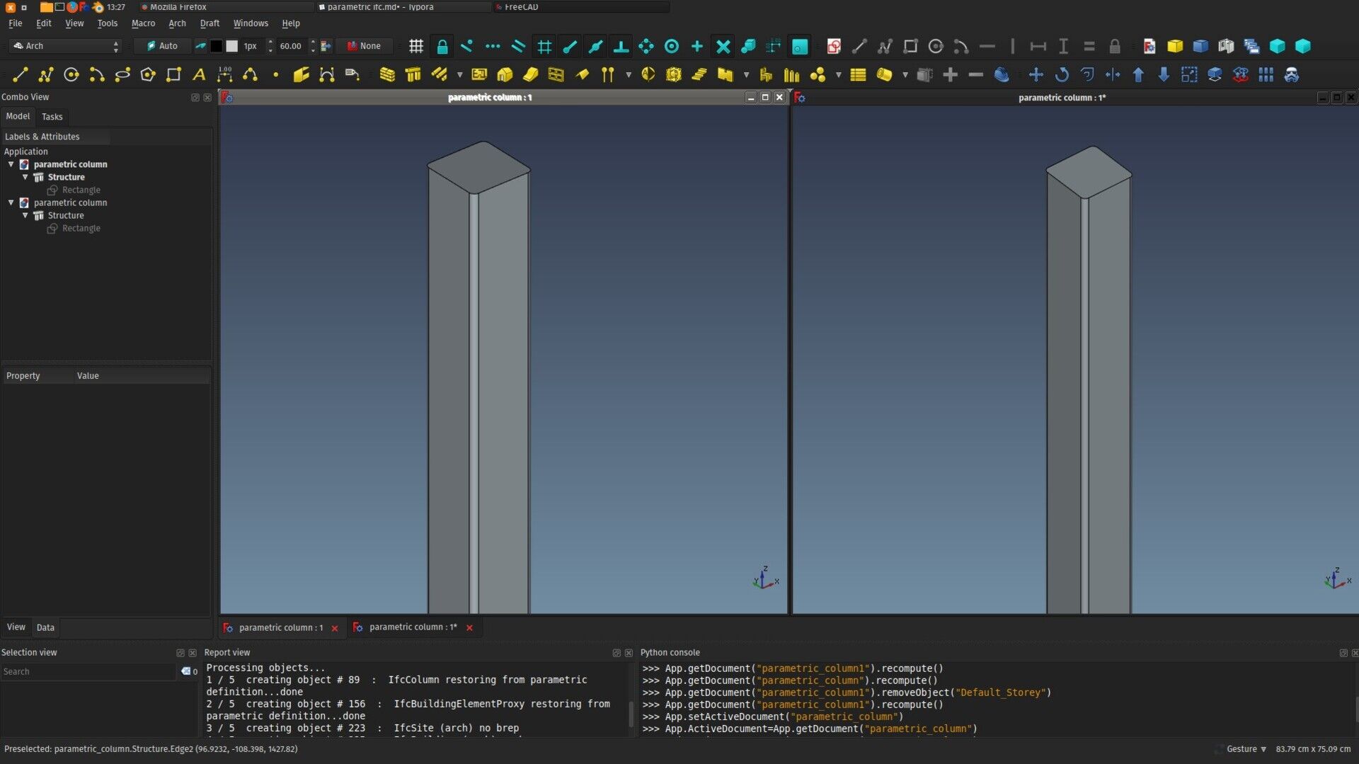 The IFC importer of FreeCAD has also been adapted so when reading that file back in FreeCAD, you obtain faithful, 100% identical parametric objects as when you exported it. In fact, when FreeCAD finds an object inside an IFC file that has a "FreeCAD" property set, it will simply skip all the rest and reconstruct the object only from the contents of the property set.