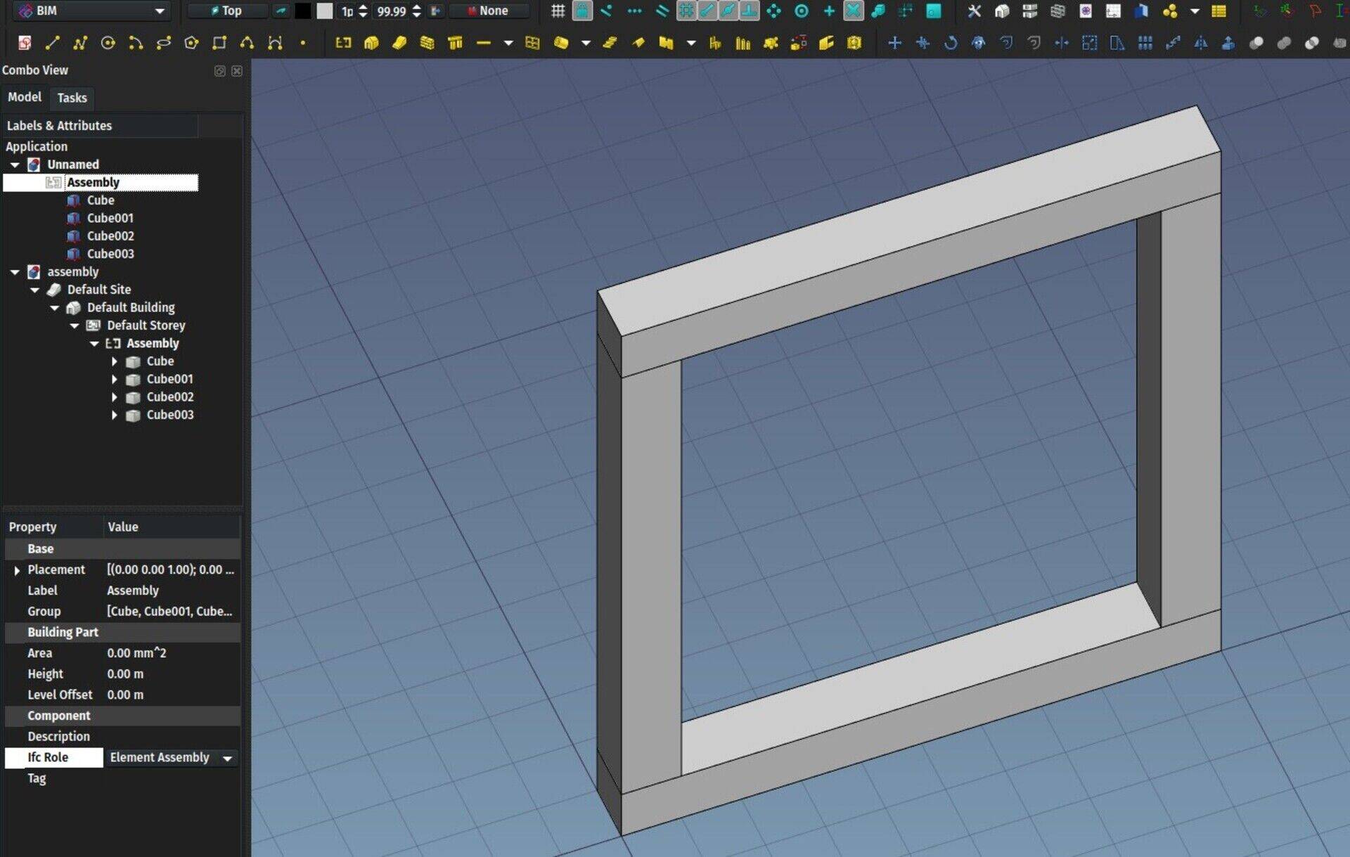 Now, if you change the Ifc Role of any BIM object to Element Assembly, it will be exported as such. But even better, BuildingParts will also be exported as IfcElementAssembly when its Ifc Role is set as such. And it is much easier to add objects to a BuildingPart, as you can drag/drop objects into it in the tree view, and is a much more "intuitive" way to construct an assembly.