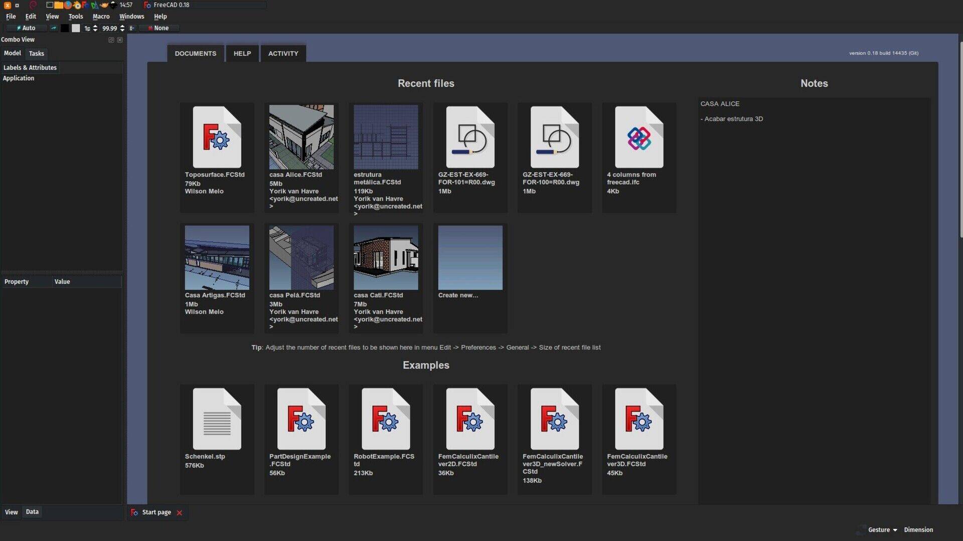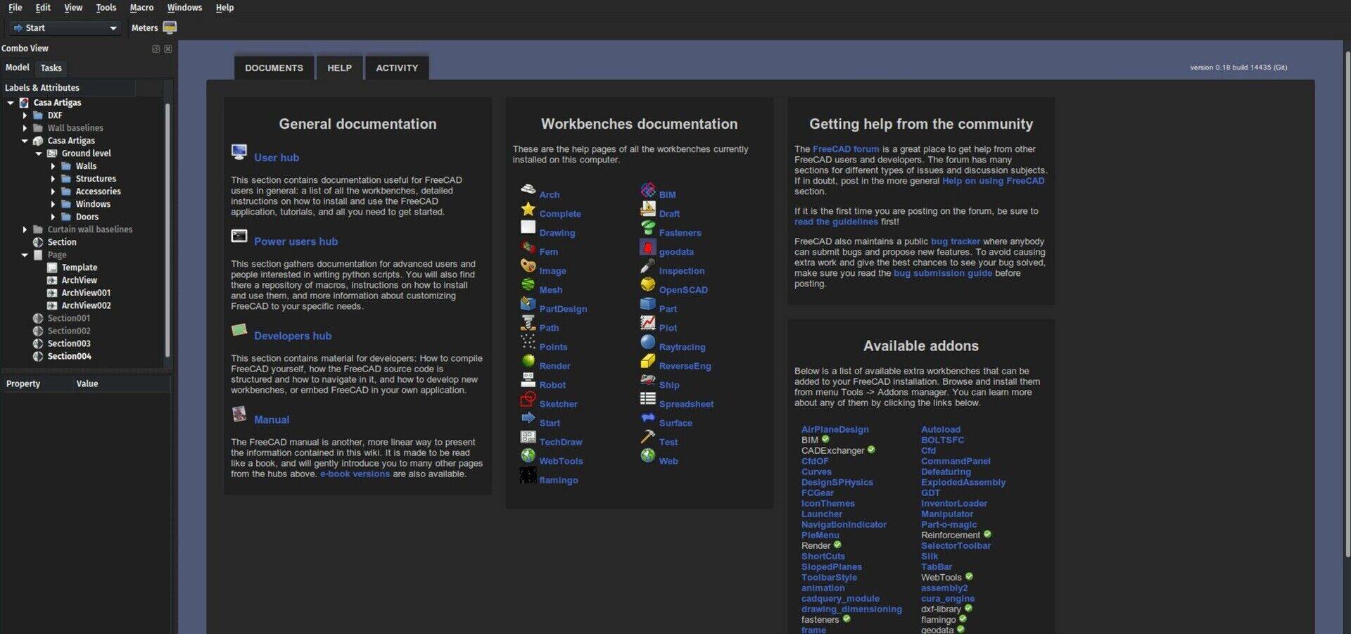 I had been busy with this for some time, and it's finally ready. The old start page, which appeared when you opened FreeCAD, was something a bit clumsy and not very usable nor interesting. Now we have something that is much more useful, both for newcomers and experienced users. There are three tabs, one for your files, one for documentation, and one to have a quick peek at the recent activity in the FreeCAD world (latest changes to the source code and latest posts on the forum), which is a feature many users liked in the previous version.