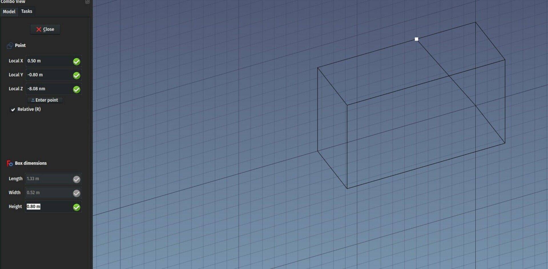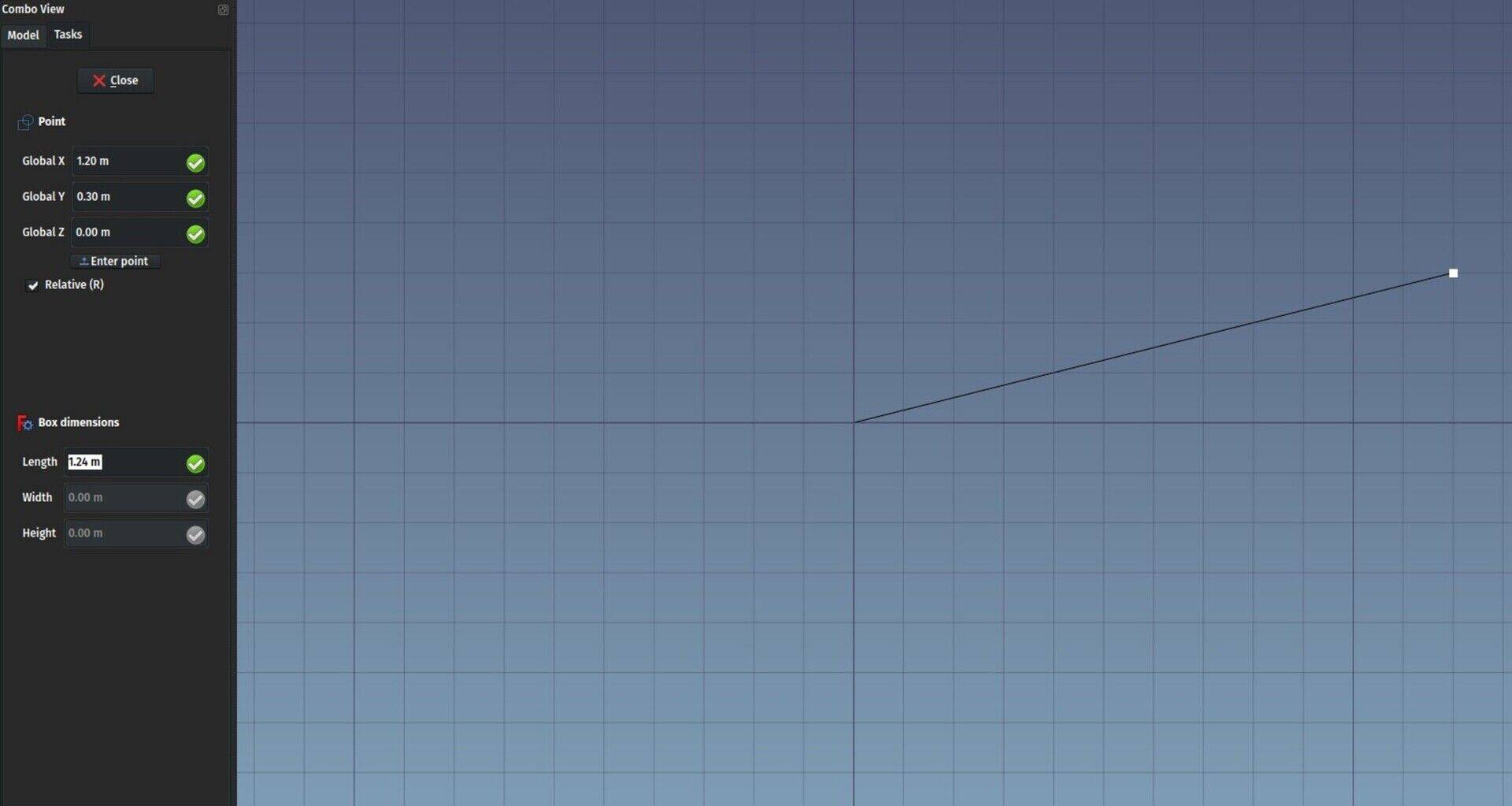 Now I rescued an existing macro and turned it into a full new BIM Box command (sorry, no doc yet) command, that still creates a Part Box, but graphically in the 3D view. You give two points to define the base line (length), a third point to define the width, and a fourth to define the height. You can also enter length, width and height manually in the Task panel, but you still need to click the two first points to define the position and orientation of your box.