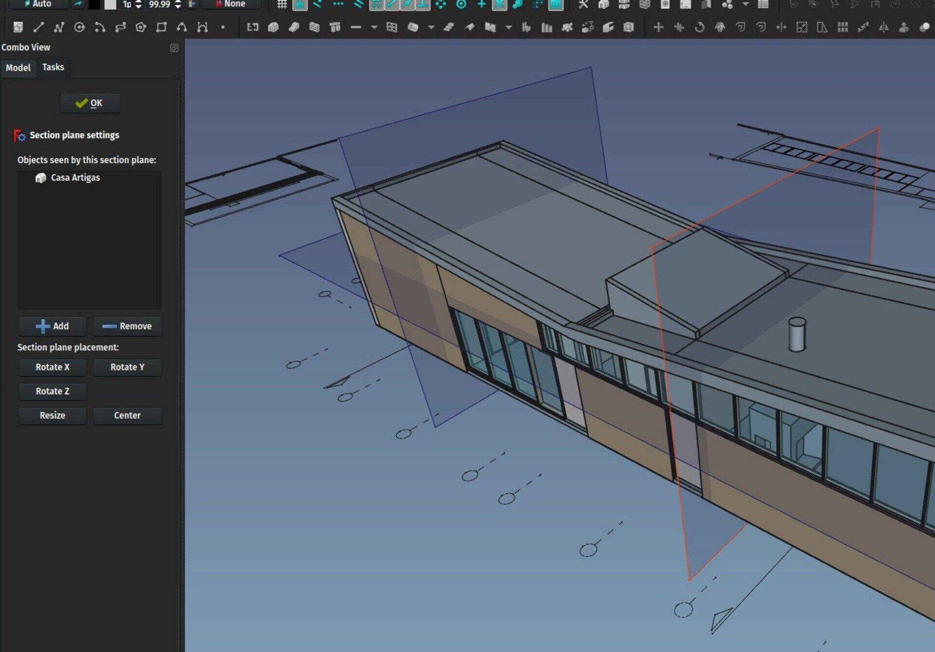 The Section Plane tool has also gained a series of improvements. First, when you create one, if you have objects selected, for example a building, the section plane will automatically be placed at the center point of the building and resized to encompass it.