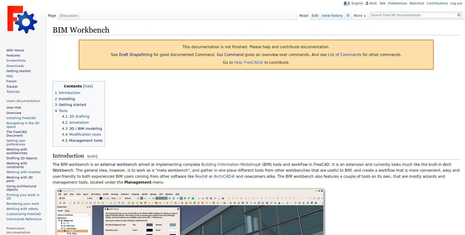 I've also started working on the documentation of the BIM workbench. As you know, the main effort behind the BIM workbench is to offer a good user experience. This is therefore a very important point. There is still some work to do, but it is there already and usable. It is also something I wanted to do to advocate other Addon workbench developers to use the FreeCAD wiki to write their documentation. The new Start workbench, that has landed in FreeCAD last month, will display links to specific workbench pages on the wiki, so this would be very useful.